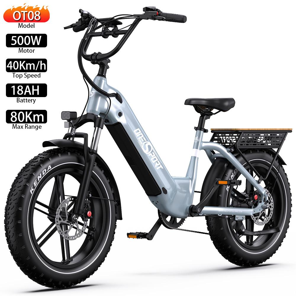 Elektrische Fiets Onesport 20 x4.0 Band 500W Motor Volwassen E-bike Dubbele Schijfrem Shimano 7 Versnellingen LCD Display 48V 18AH Grijs OT08 blauw