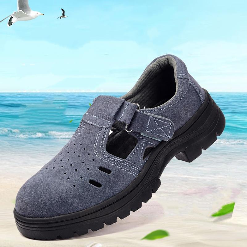 mens casual breathable steel toe caps working safety shoes worker summer safe shoe soft leather sandals security boots protect cm gray