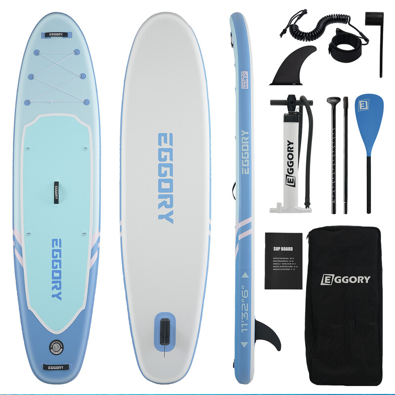 EGGORY Aufblasbares Stand-Up-Paddle-Board Frisch Blau Grau 3350x830x150mm 1 Stück