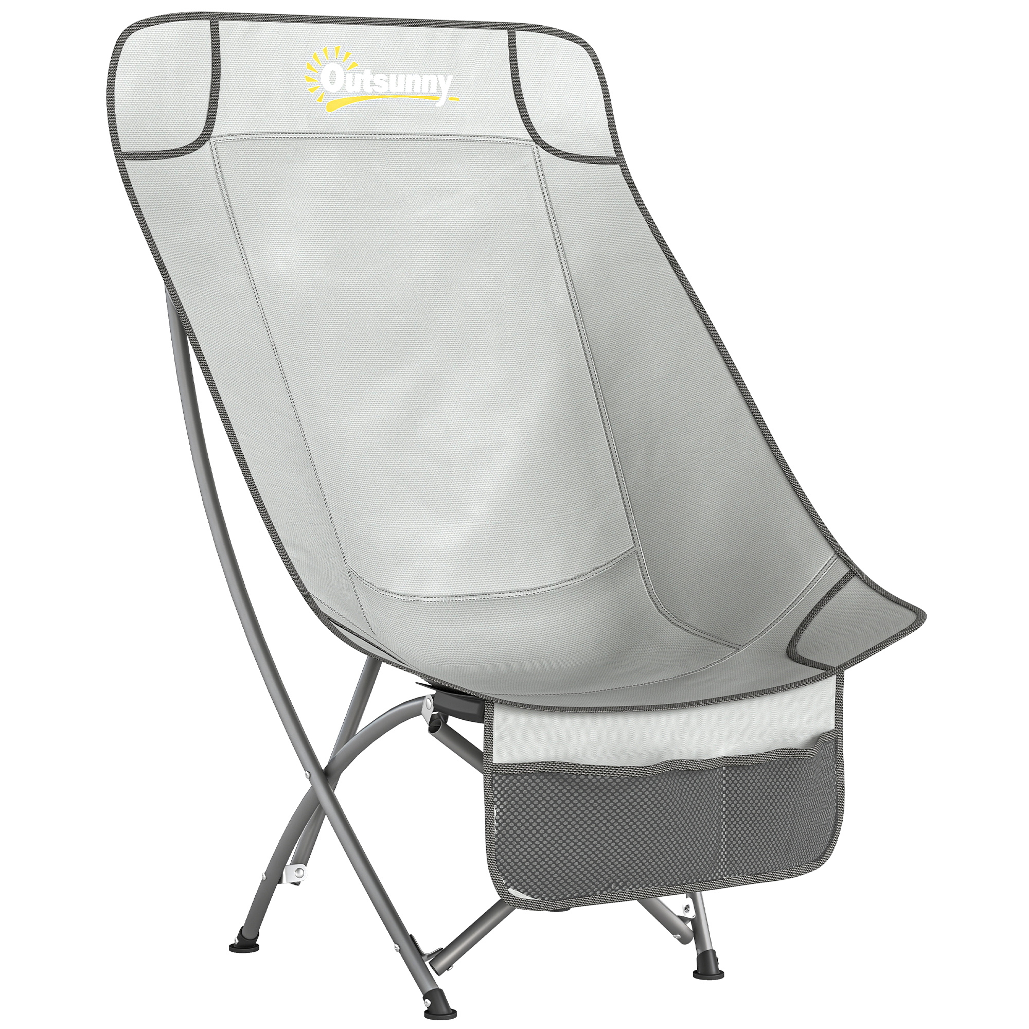 Outsunny Camping Chair for Adults Heavy Duty Folding Camp Chair with Side Pocket and Carry Bag Light Grey
