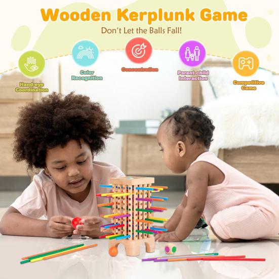 Trepinnetårnleke med 42 pinner 6 baller terninger Finmotorikkutvikling Pinnetelling Matematikk Pedagogisk brettspill Gutter Jenter Gave flerfarget