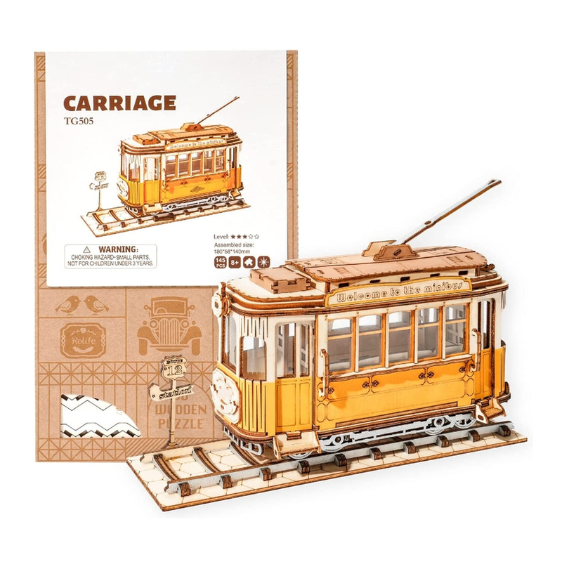 Robotime Rolife Holz 3D Straßenbahn Spielzeug Bausatz Puzzle für Erwachsene - Holzhandwerks-Kit,Ausstattung mit hauswaren und regalen; Der bastelten geschenke an erwachsene und jugendliche,So ein schlaues spielzeug.