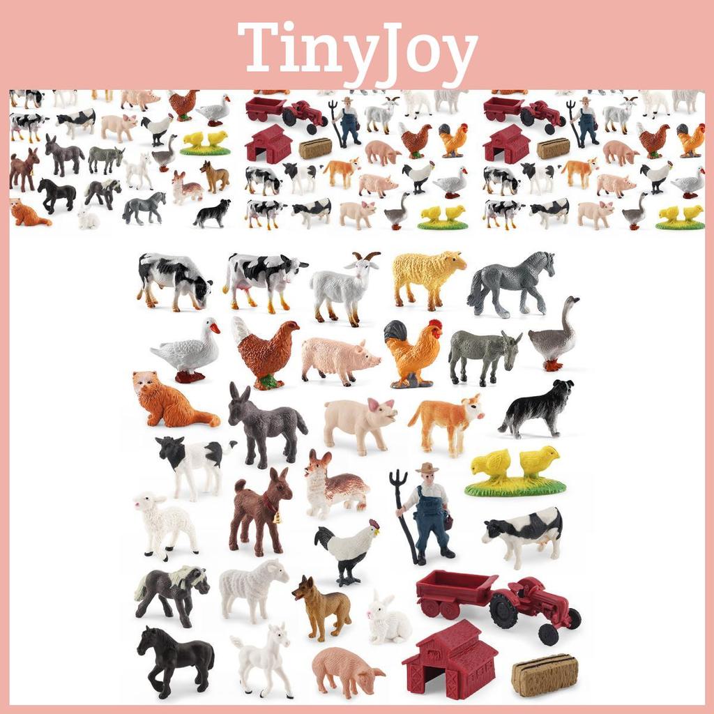 Høykvalitets 34-delers mini-gårdsdyrfigursett bestående av realistiske modeller av kylling, and, gris, hund, katt, ku, sau, hest, esel