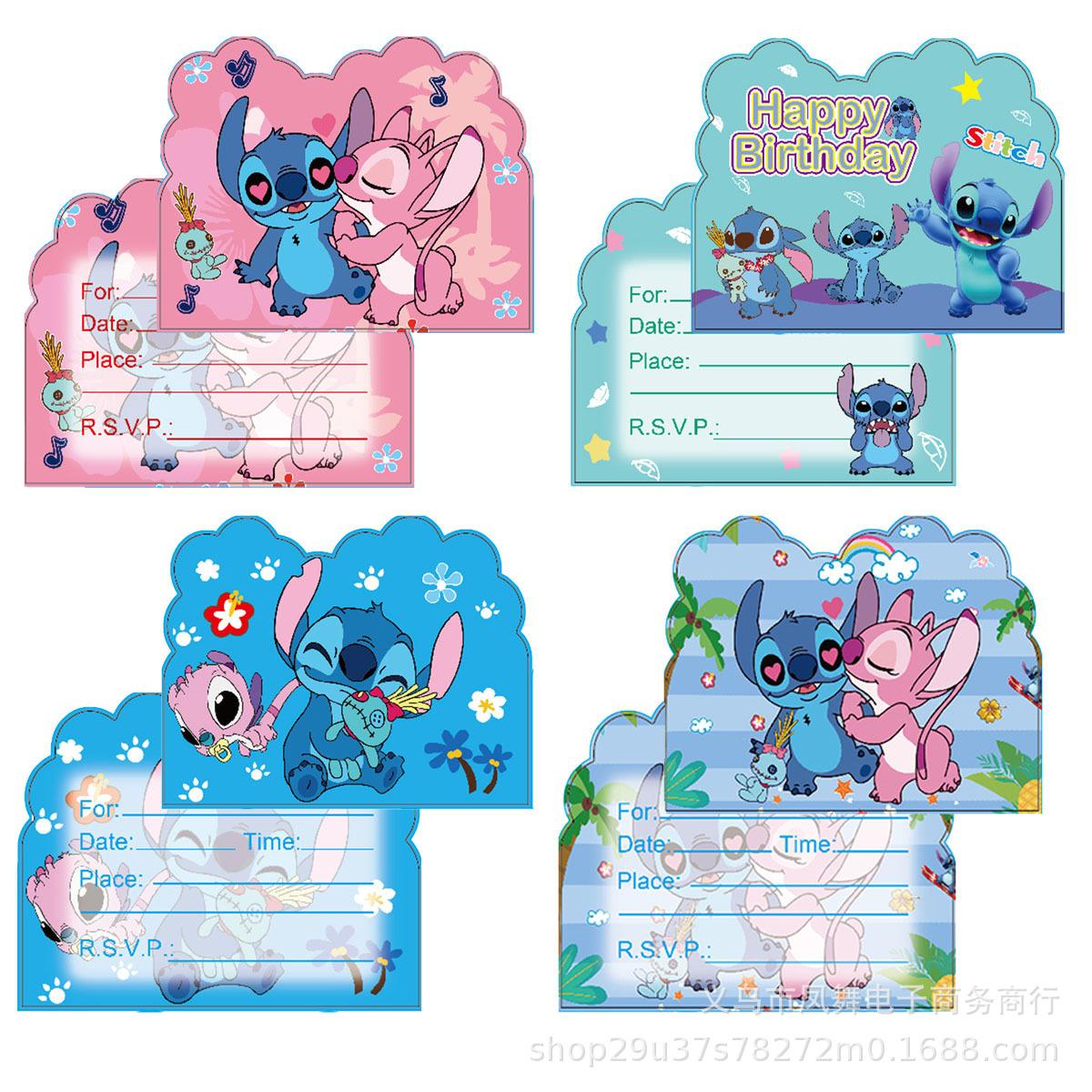 Kontant Søt Invitasjonskort Stjerne Baby Stitch Invitasjonskort Bursdagsfest Invitasjon Tegneserie Rosa