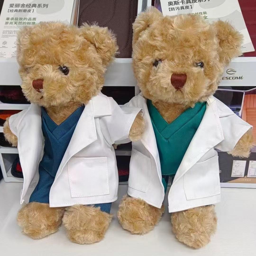 Creative doctor nurse teddy bear can print logo plush toy doll white coat uniform bear medical activity