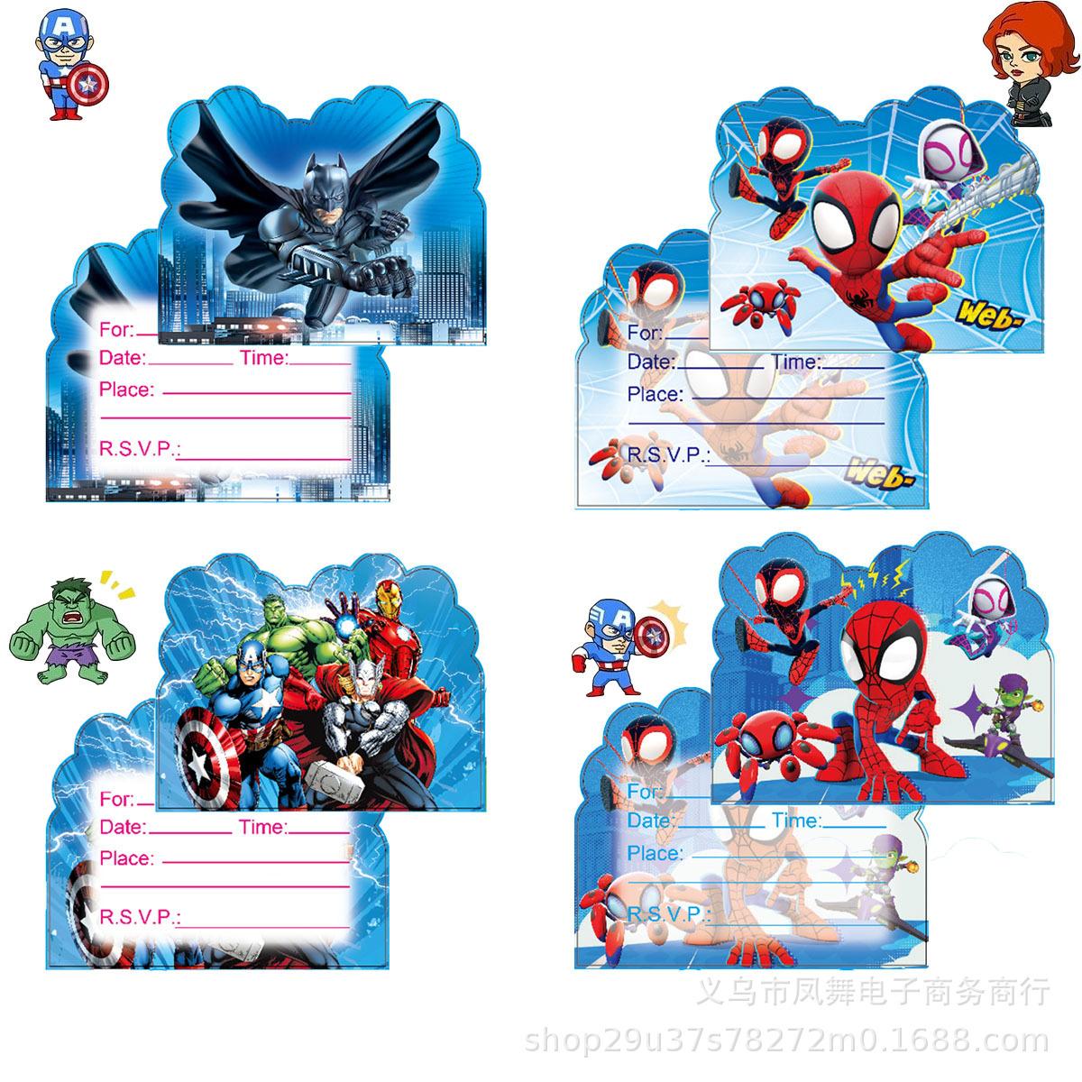 Invitasjonskort for barn Bursdagsfestinvitasjon Spider-Man Batman Hulk Festinvitasjonskort