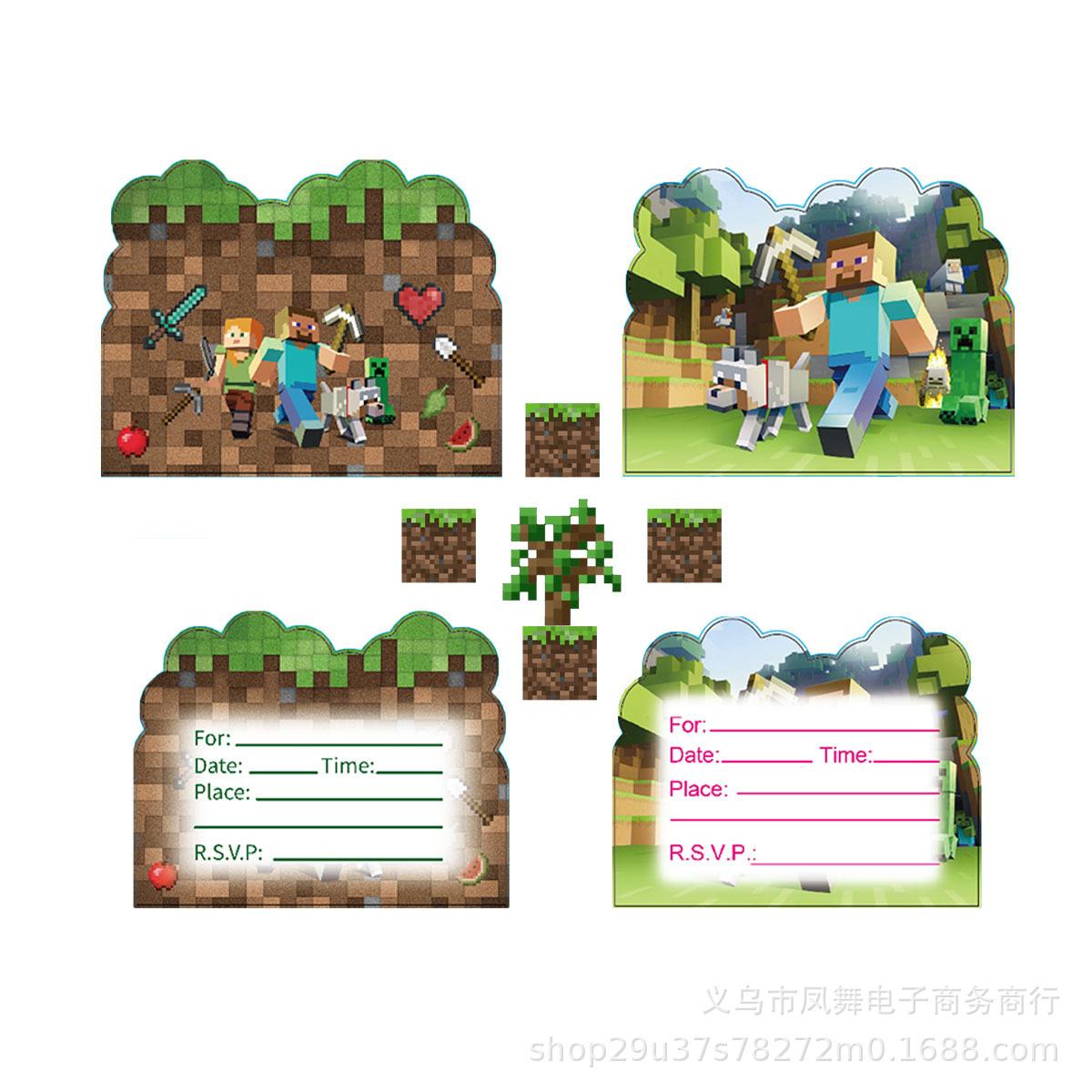 Invitasjonskort Min Verden Invitasjonskort Pixel Wars Fest Bursdagsdekorasjoner Tegneserieinvitasjon
