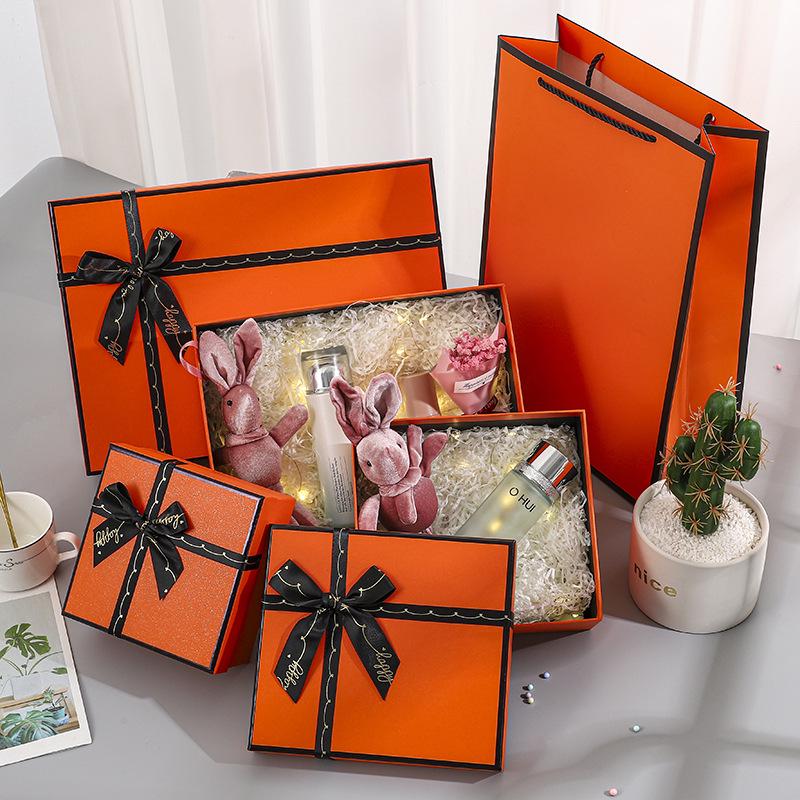 Orange presentask med band för kosmetika och läppstiftförpackning 8cm