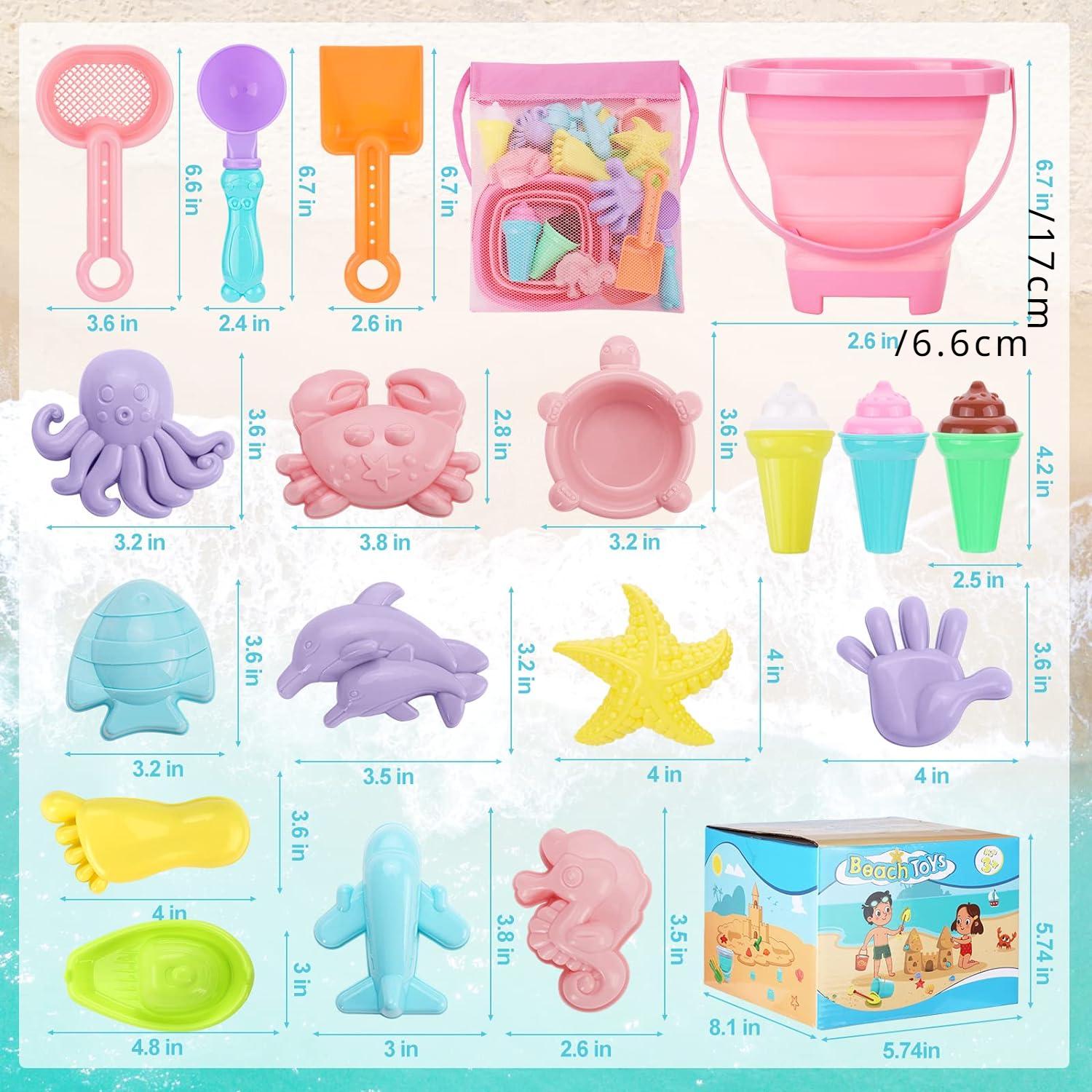 20 stk. strandleker sett for barn småbarn jenter sammenleggbare sandbøtter spader sett nettingposer sandformer iskrem reise sandleker
