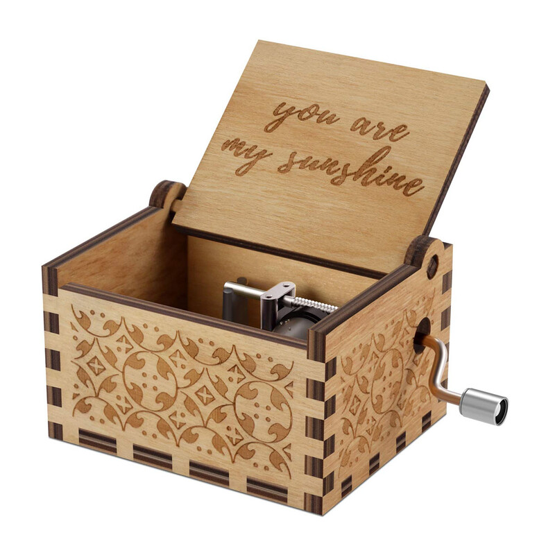 Alphynix 1pc Hand-Cranked Music Box, "You Are My Sunshine" Engraved Interior, Wooden Retro Musical Gift with Carved Floral Patterns