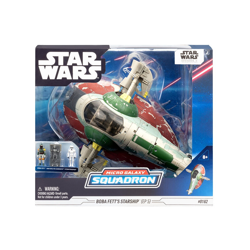 Star Wars Micro Galaxy Squadron Boba Fett's Starship (Episode 5) 7inch Vehicle with Flight Display Stand and Three 1inch Micro Figure Accessories