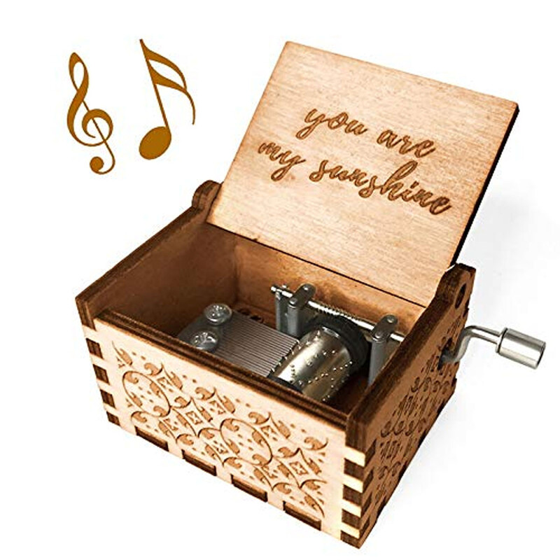 Alphynix „You Are My Sunshine“ Musikbox, handkurbelbetrieben, Holz-Erinnerungsstück mit lasergravierten Liedtexten, Vintage-Musikgeschenk für Liebhaber, 1 Stück