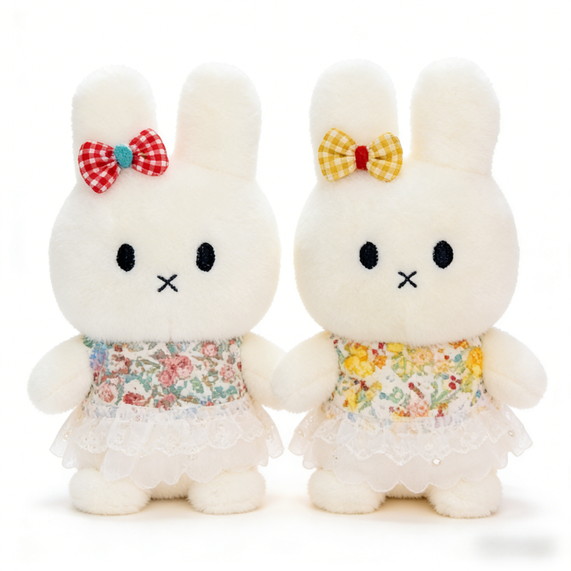 Peluche Lapin avec robe et nœud papillon, modèle aléatoire - 28 cm