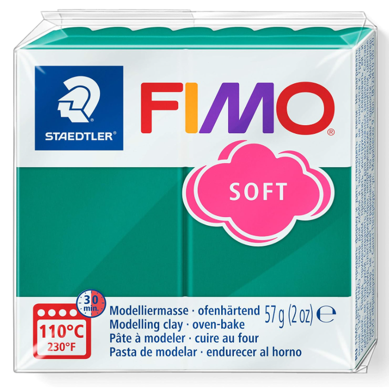STAEDTLER FIMO® Soft weiche Modelliermasse (Thermoplast), 57 g Block, portioniert, smaragdgrün, smaragdgrün