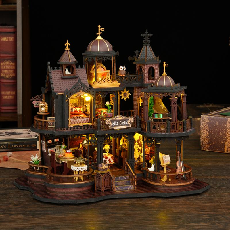 Doe-het-zelf Houten Puzzel Edinburgh Kasteel Huis Beeldjes Miniaturen Kits Met LED Verlichting Poppenhuis Woondecoratie Voor Volwassenen Handgemaakte