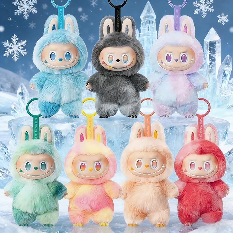 Anime Figur Labubu Nyckelring Söt Monsterfigur Leksak Plysch Hänge Docka Kawaii Dekor Gåva för Väska Bilnycklar rosa
