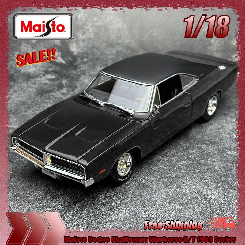 Lager Maisto 1:18 Dodge Challenger Warhorse R/t 1969 Serie Simulasjon Legering Miniatyr Støpt Bilmodell Egendefinert Leketøy Gave Svart
