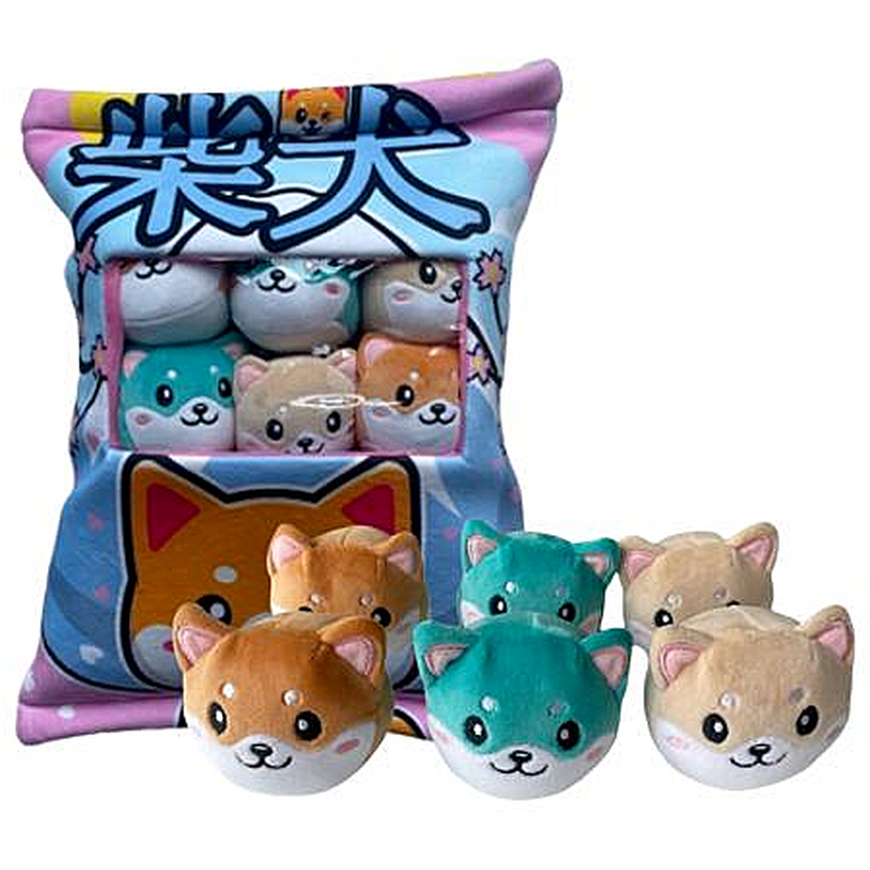 Coussin Kawaii + 6 mini Peluches chiens Shiba Inu