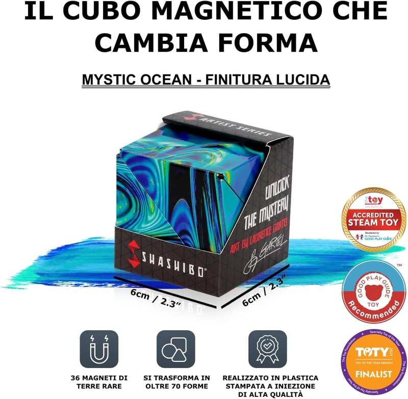 Shashibo Formwechsel-Box – Preisgekrönter, patentierter Zappelwürfel mit 36 Seltenerdmagneten – lässt sich in über 70 Formen verwandeln (Mystic Ocean)