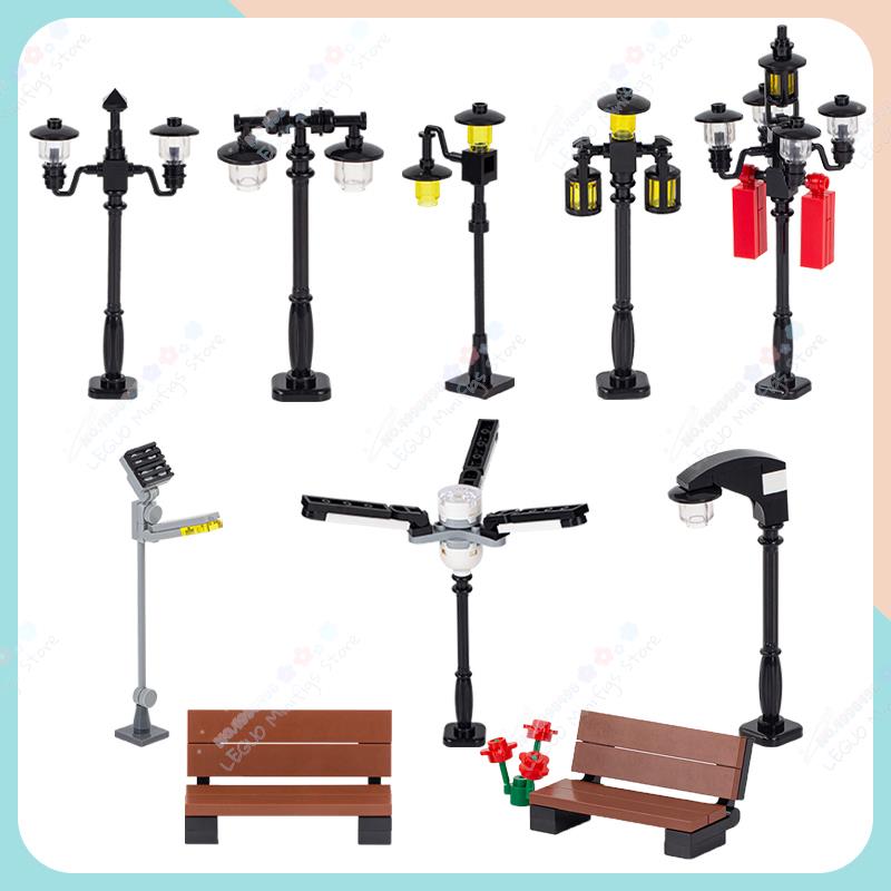 City Series Openbare Straatverlichting MOC Bouwstenen DIY Wegberm Bank Straatlantaarn Decoratie Model Montage Steentjes Speelgoed Voor Kinderen