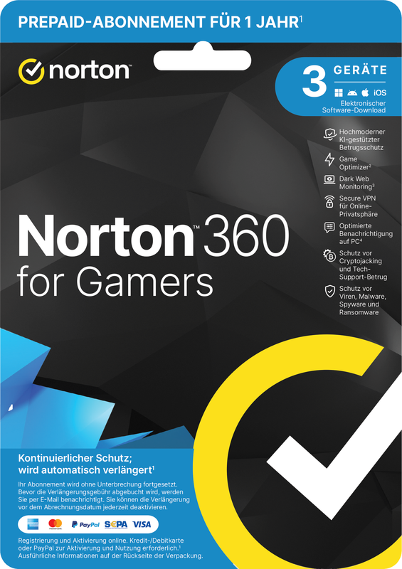 Norton 360 für Gamer, 3 Geräte, 1 Jahr (JD)