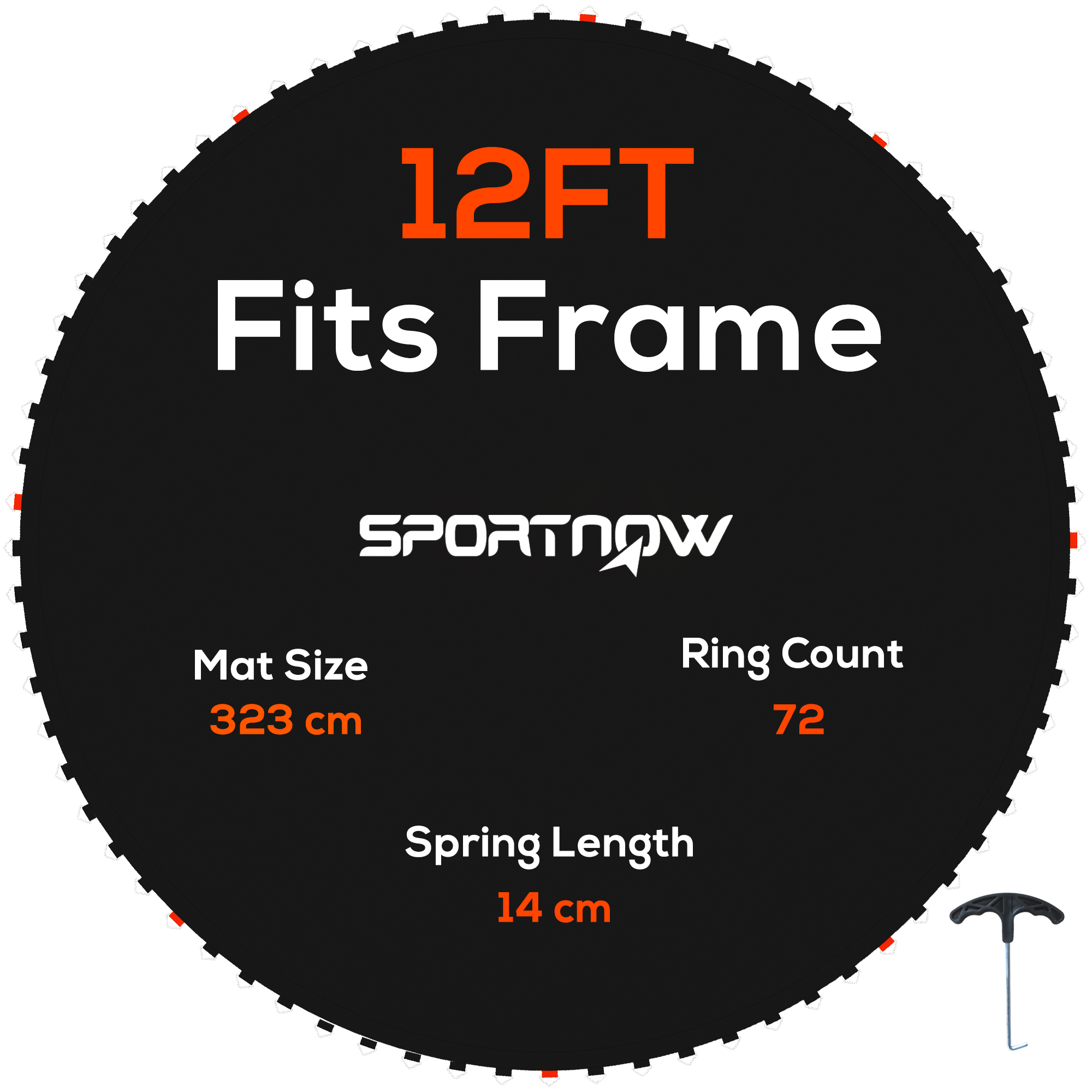 SPORTNOW Replacement Trampoline Mat with Spring Pull Tool, 72 V-Hooks, for 12ft Trampoline using 14cm Springs, Orange