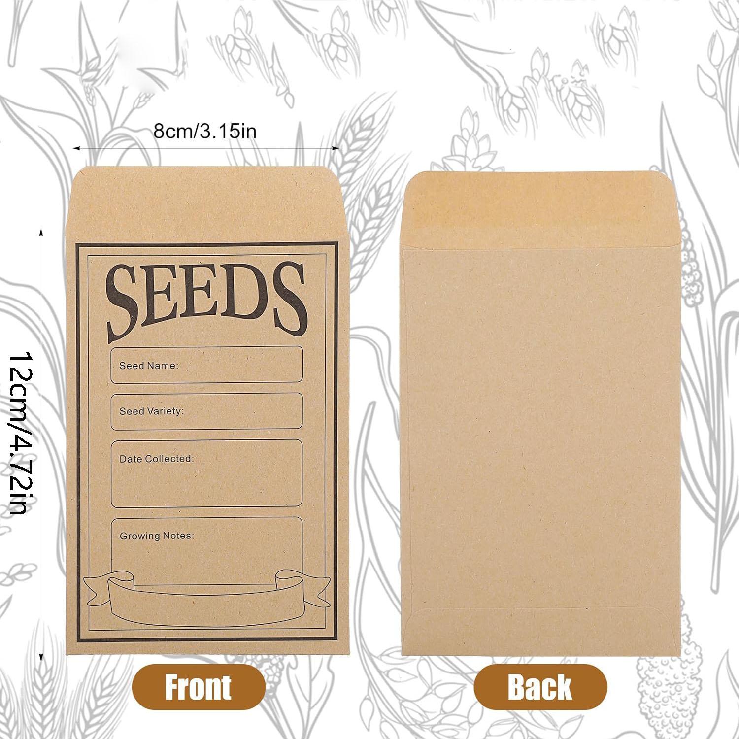 100/200 STK Brune Kraftpapir Frøposer Selvklebende Oppbevaring Frø Myntposer Konvolutter for Planter Blomster Grønnsaker Samling 12cm
