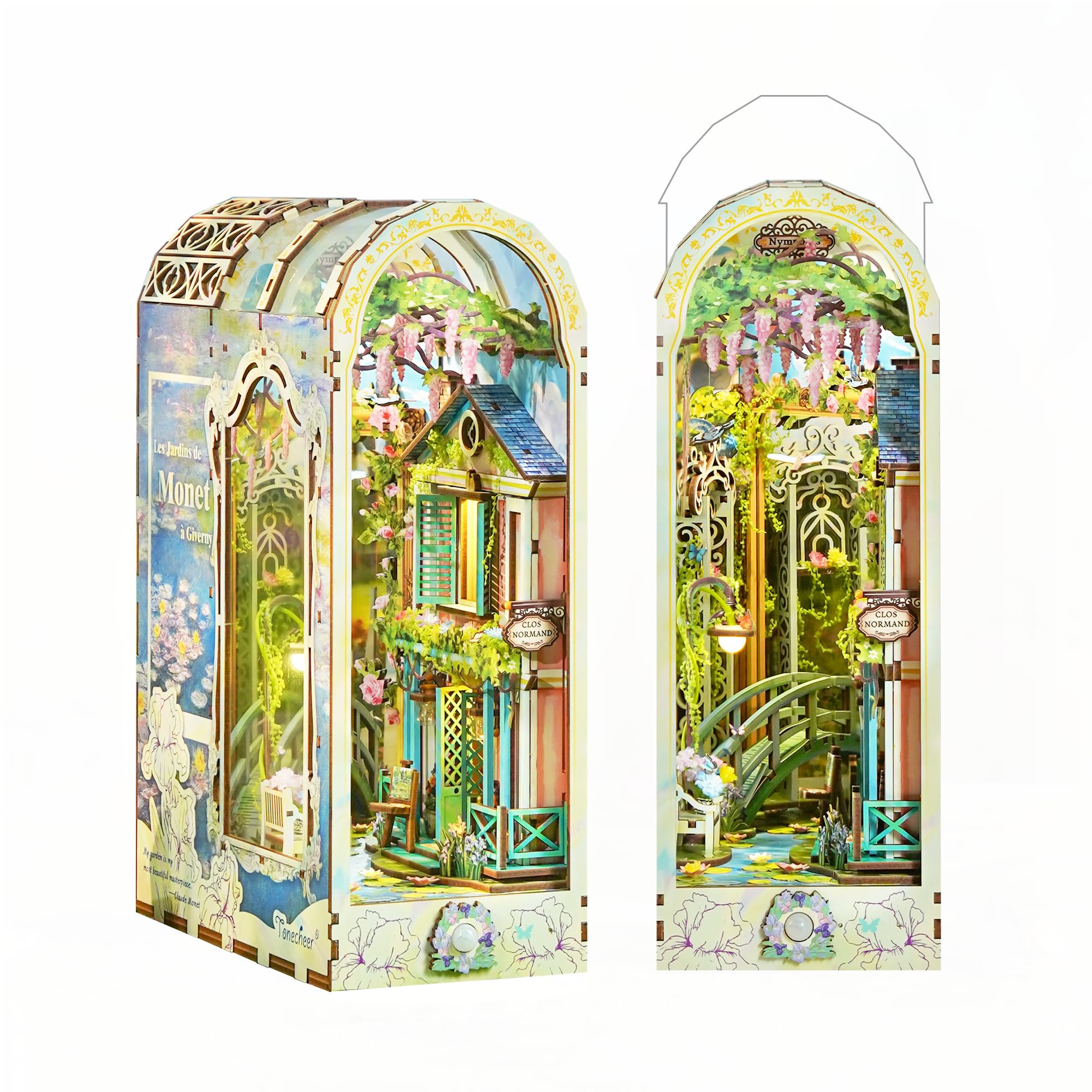 Gör-det-själv Bokhörna Kit Miniatyr Dockhus Med LED-ljus 3D Pussel Modellbygge Trä Bokhylla Bokstöd Leksak Vuxna Födelsdagspresent