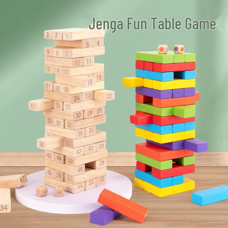 Large Wooden Jenga Stacking Blocks Tower Game for Children & Parents - Interactive Balance and High Stacking Fun