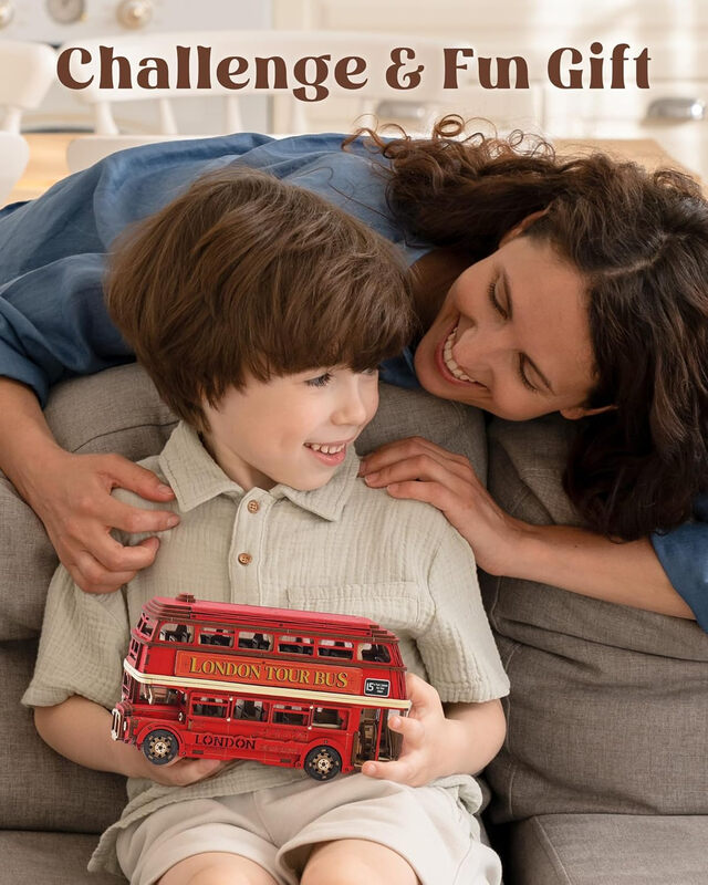 Robotime Rolife London Doppeldeckerbus 3D-Holzpuzzle Bauspielzeug, 19,4 x 7,8 x 11,3 cm, 1 Stück,Ausstattung mit hauswaren und regalen; Der bastelten geschenke an erwachsene und jugendliche,So ein schlaues spielzeug.