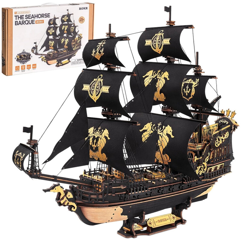 Robotime ROKR Marble Night City 3D Wooden Puzzle Building Toys 32.5X21.4X22.8cm 1 Pc,Home decoration, bookshelf decoration,Craft Gifts for Adults and Teens,Educational toys
