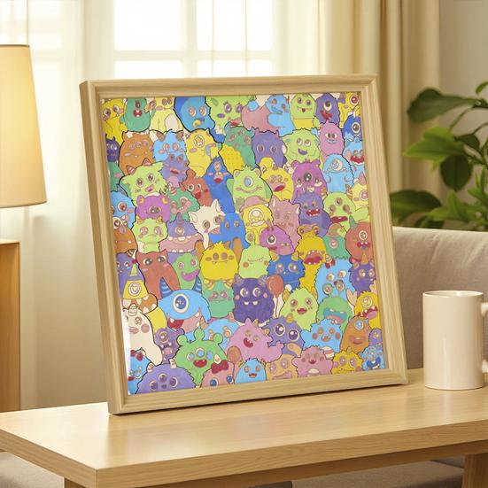Wooden Coloring Puzzle Kit with Photo Frame Marker Pens DIY Kids Adults Hand-Painted Cartoon Jigsaw Puzzle Decoration Ornament