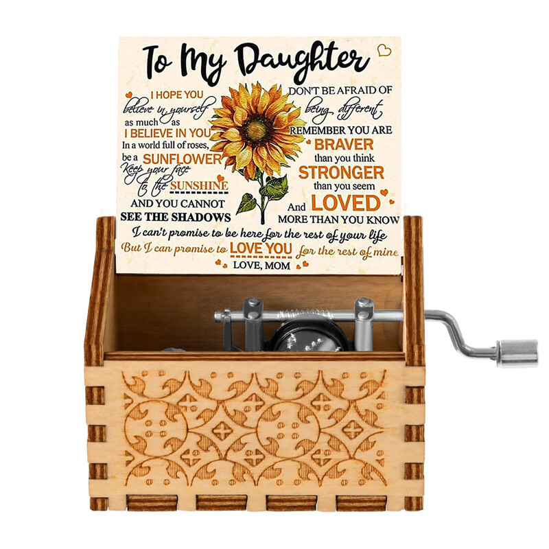 Alphynix 1pc Encouragement Music Box for Daughter, Features "Be a Sunflower" Quote and Motivational Messages, Hand-Cranked Wooden Gift from Mother