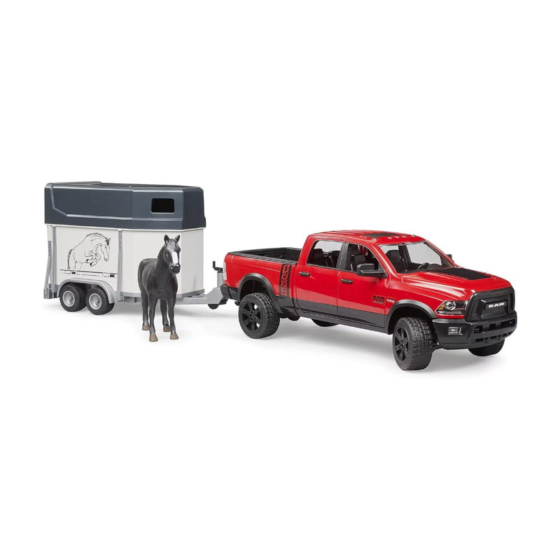 Bruder 02501 - RAM 2500 Power Wagon mit Pferdeanhänger & Pferd - 1:16 Pick-up Geländewagen Tiertransporter Spielzeug