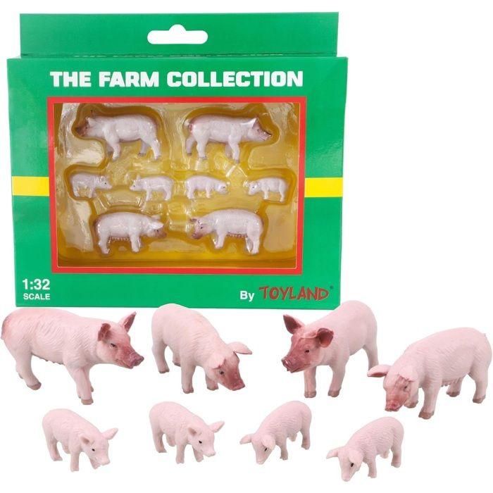 Toyland - Set med 8 Djurfigurer av Stora vita grisar och kultingar i skala 1:32 - La Collection Farm