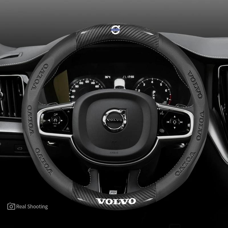 Housse de Volant Volvo Wrap Cuir Daim Respirante Antidérapante Universelle 37-38cm Housses de Volant Décoration Accessoires Voiture