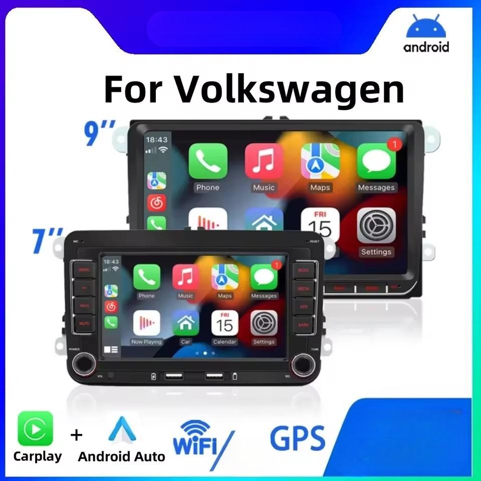 2Din bilradio Android for Volkswagen Golf 5 6 Polo Passat B6 B7 CC Skoda Jetta Universal Multimedia Carplay Wifi GPS-navigasjon Svart