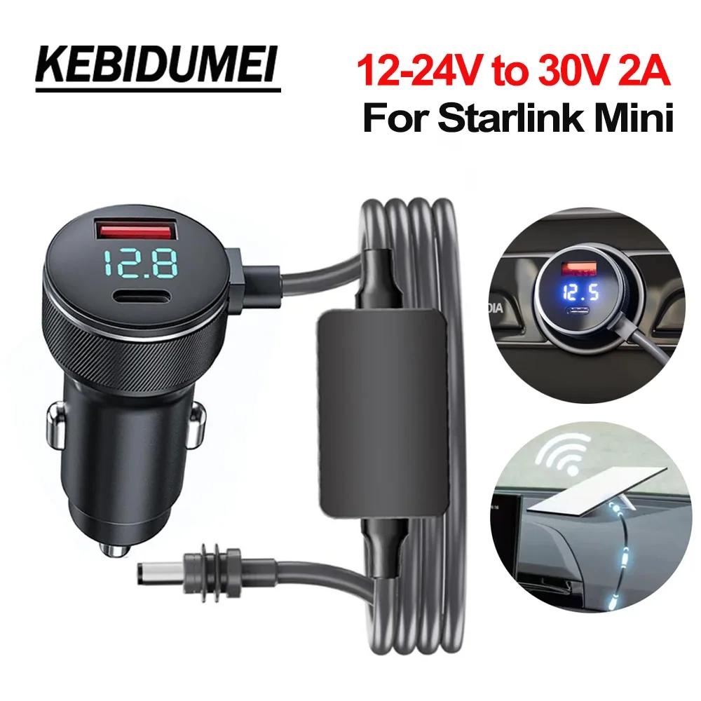 Vanntett Starlink Mini Strømadapter 12V-24V til 30V 2A Step-Up-omformer, QC3.0+PD Type C Telefonlader med Digital Voltmeter perlemor farge