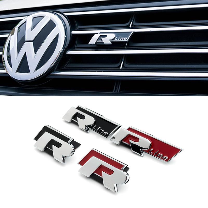 1 pièce Insigne Métal 3D R-line R Autocollant de Carrosserie Calandre Avant Coffre Emblème Auto Pour R-line R GTI Polo Golf 5 6 7 MK8 Touareg Passat b