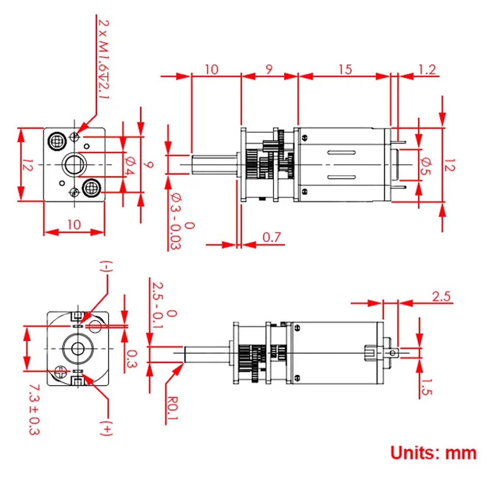 GA12-N20 Micro Metal Reduction Motor 3V 6V 12V Low Speed Micro DC Brushed Gear Reduction Motor