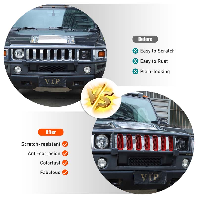 7 stk Svart/Rød Bil Frontgrill Inlegg Honningkake Grillinett Beskyttelsesdeksel For Hummer H2 2003-2009 Utvendig Tilbehør Svart