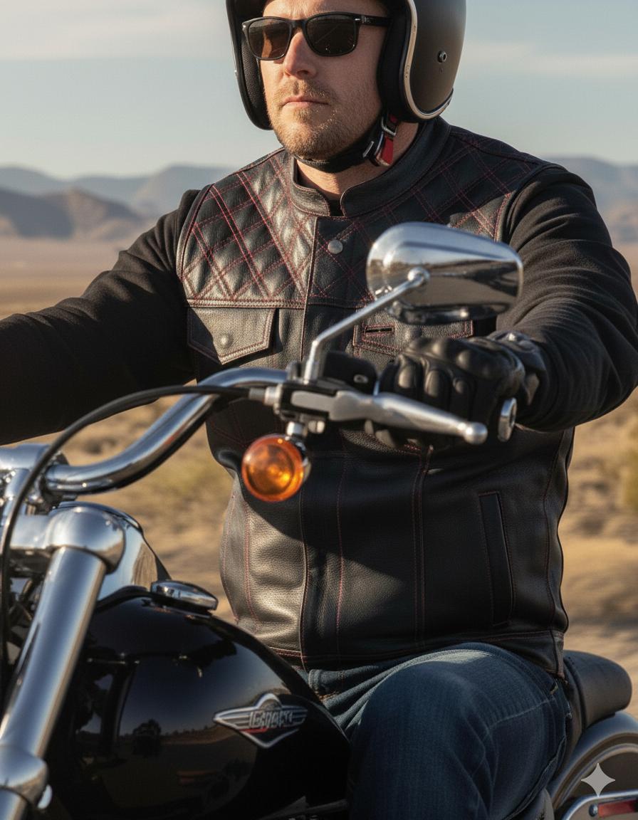 GEARX Carlo Läder Väst Motorcykel Midjekappa Diamantmönster Cruiser Chopper Harley Sons of Anarchy Stil vit