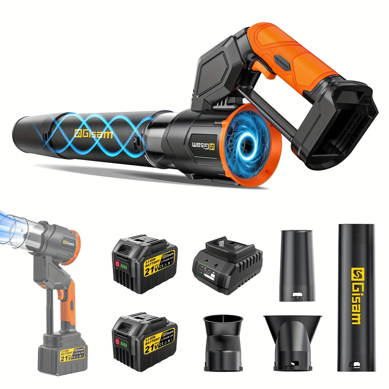 VIOLEWORKS Souffleur sans fil à moteur sans balais 2-en-1, avec 2 batteries de 6,0 Ah, 3 réglages de vitesse, vitesse maximale 800 000 tr/min, débit d’air 850 m³/h, modes vertical et horizontal pour jardin, feuilles et poussière