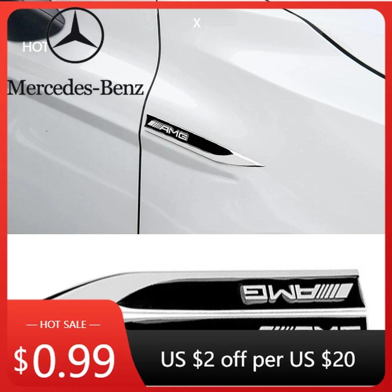 GLC GLB 2pcs Bande d'aile latérale de voiture Autocollants métalliques Emblème Badge Pour Mercedes Benz AMG Classe C E S GLE CLC W205 C300 W203 W206 W
