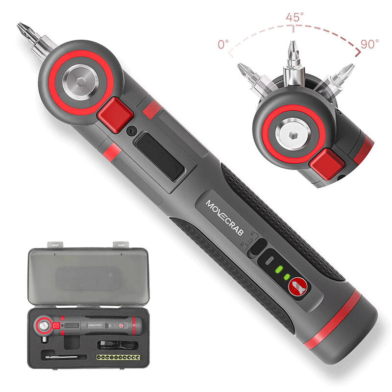 MOVECRAB 3-in-1 Angle Adjustable Electric Screwdriver Set 12PCS Mini Cordless Tool with LED Light & 3 Speed Adjustable Torque (3-5N.m) 2000mAh Powerful Rechargeable Screwdriver for DIY Crafts, Phone, Laptop Repair