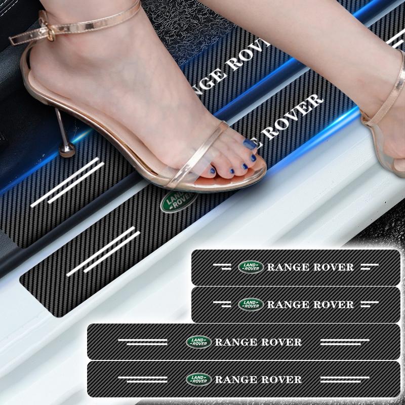 4Pc Car Door Plate Carbon Fiber Threshold Protector Sticker for Land Rover Discovery Range Rover Evpque Defender Car Eyeglass Rover L322 L405 black