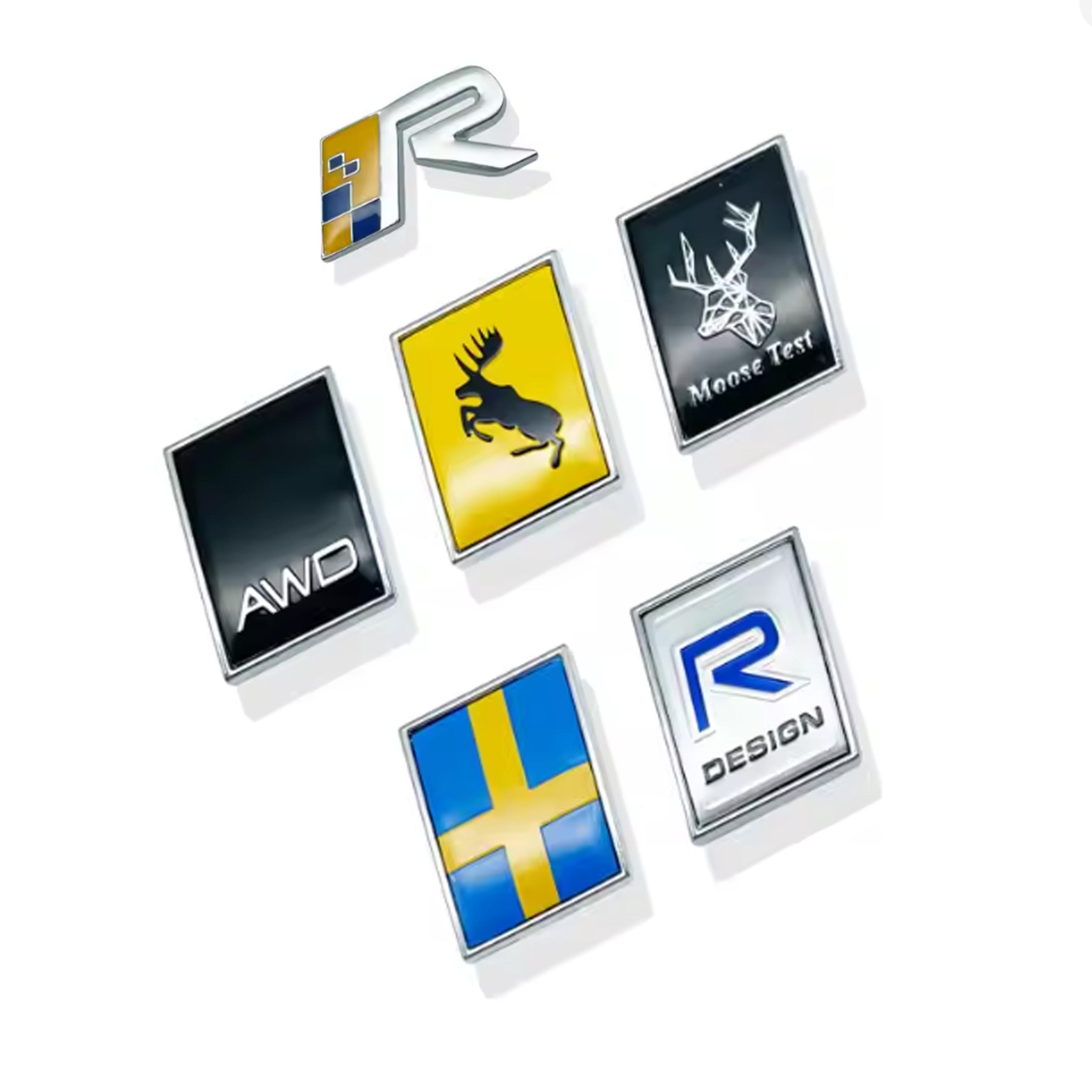 3D Metaal Chroom R Design AWD Embleem Zweedse Vlag Eland Hert Achterklep Spatbord Zijkant Badge Sticker Voor V40 XC60 XC90 C30 V60