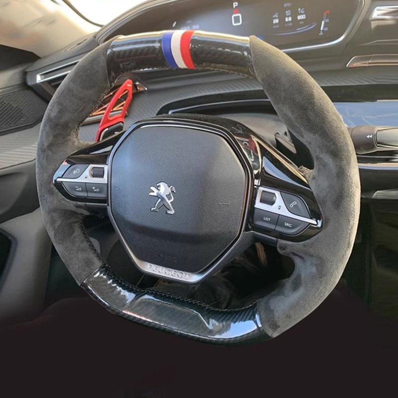 Pour Peugeot e-208 508 208 3008 4008 5008 2016- Housse de Volant de Voiture Antidérapante en Daim Cousu à la Main Fibre de Carbone