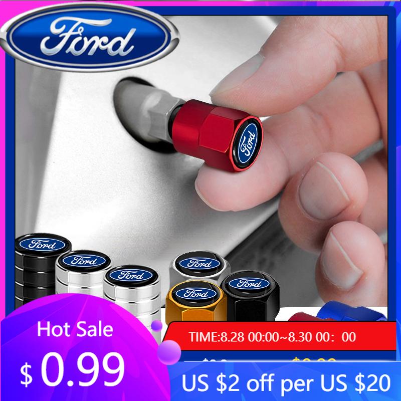 Ny 2026 Bilklistremerke 4 stk 3D Aluminiumlegering Bilhjul Dekk Luftventil Støvhetter Felg For Ford Escape Kuga Mondeo Ecosport Fiesta F Blå