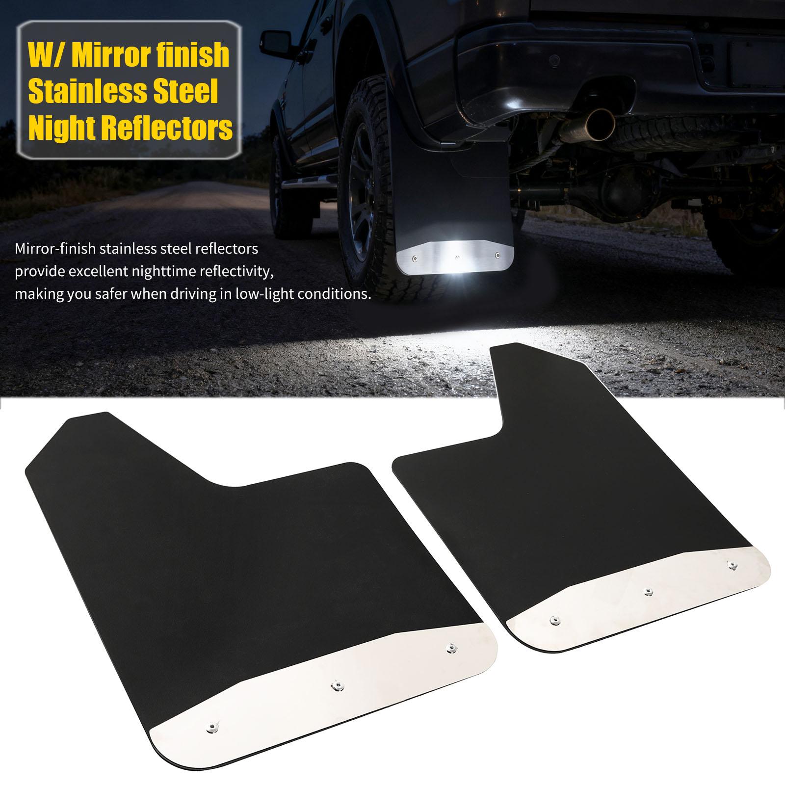 2 stk Universale Rallybil Skvettlapper Rustfritt Stålplate Nattreflektorer Bobil Tilhenger Lastebil Pickup Sprutskjermer Mudguards Skjerm Svart